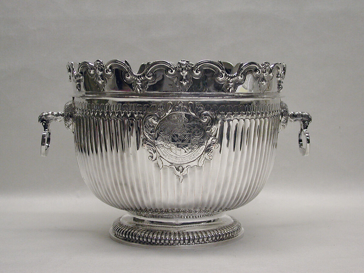The original monteith was made in Ireland in the early eighteenth century and engraved with the arms of Trinity College, Dublin.