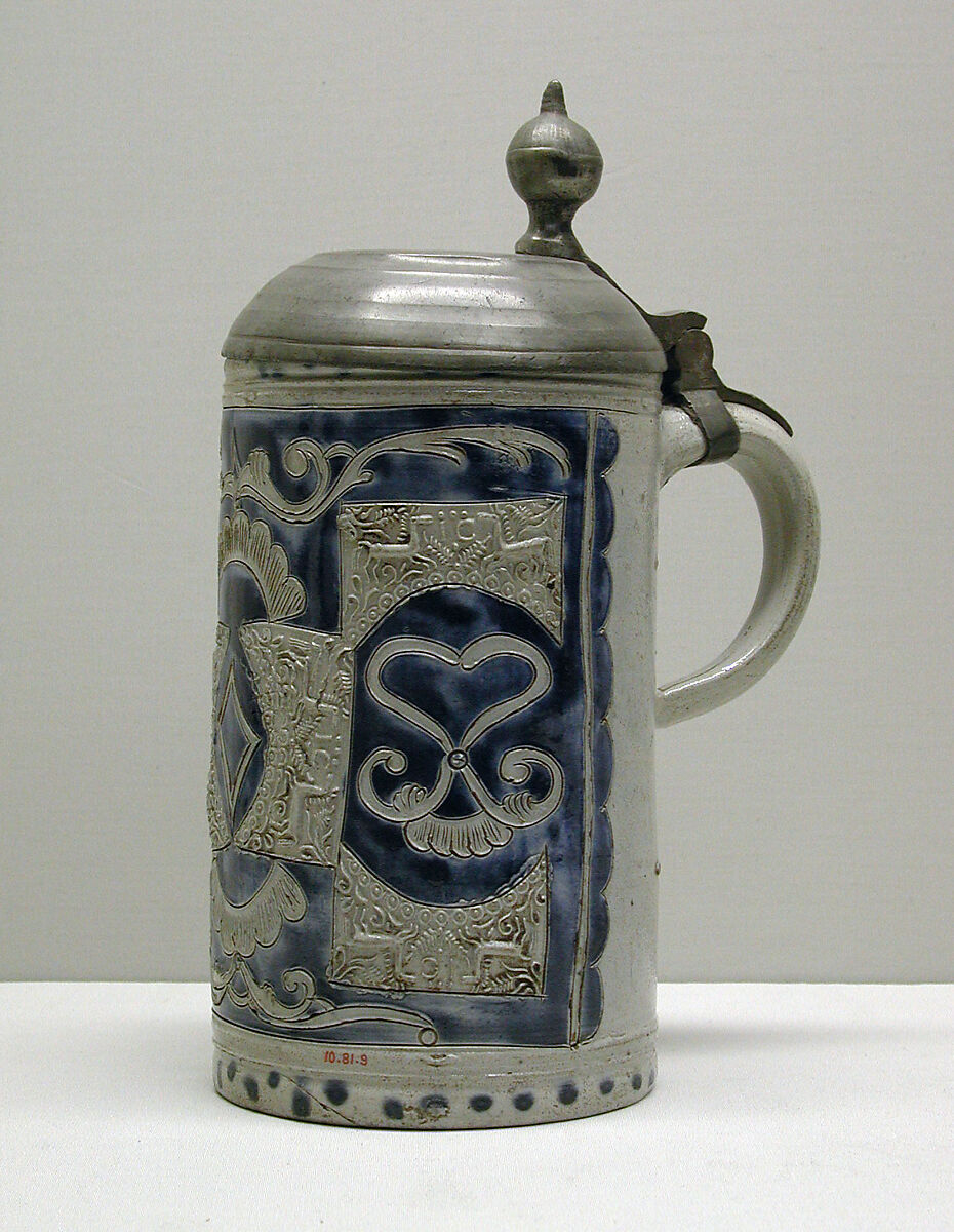 German stoneware tankards were brought to America in large numbers on Dutch fur-trading ships. Shards of these popular vessels have been uncovered at seventeenth century sites in New York and New England.