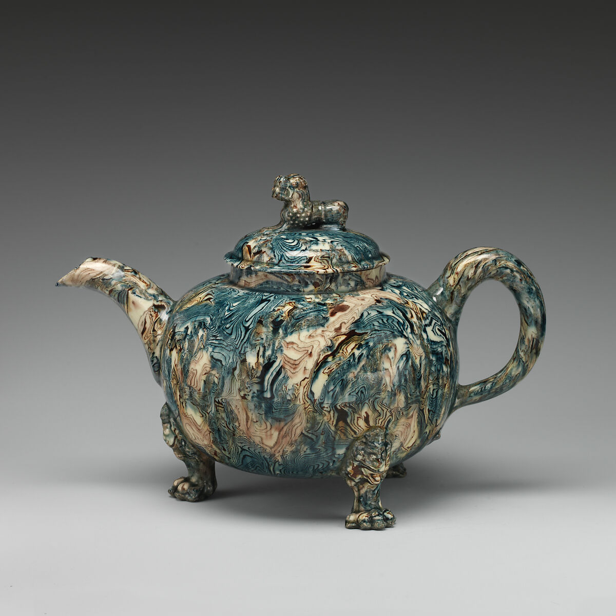 - Medium: Agateware (glazed earthenware)