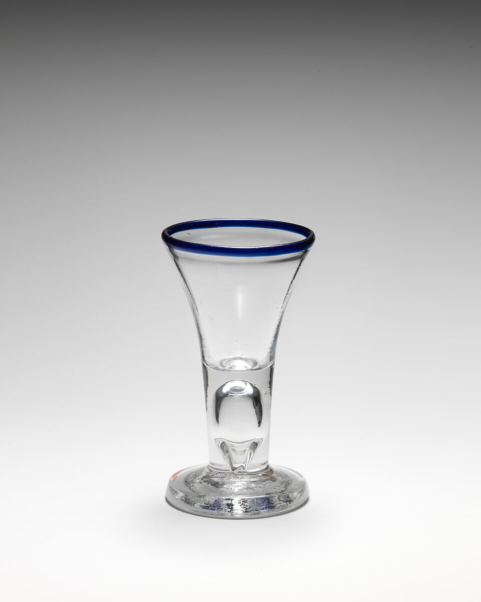 The heavy foot on this glass indicates that it was of the type used as a "firing glass," to be pounded on the table after a toast.
