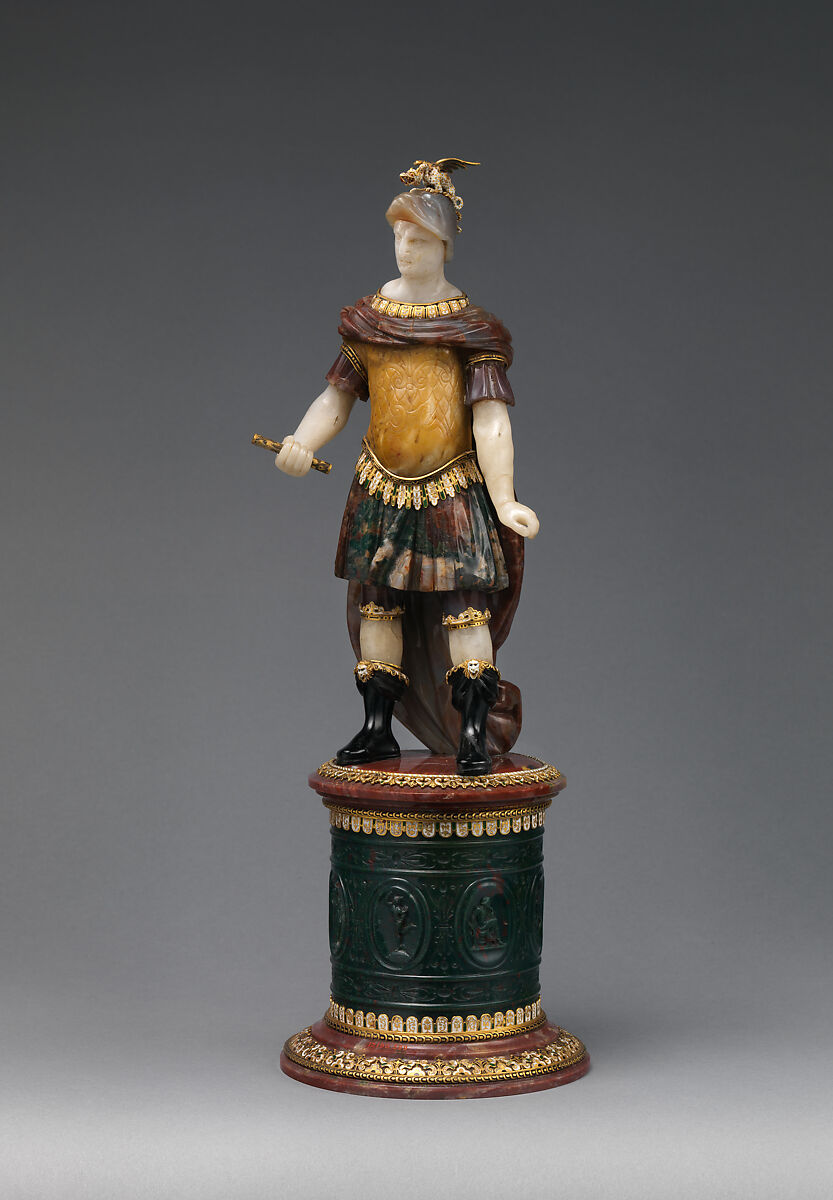 This Silver Caesars–inspired statuette was probably made by Reinhold Vasters, a nineteenth-century goldsmith famous for his forgeries of Renaissance objects. Vasters evidently admired the tazze—his personal collection included copies of the Augustus and Vitellius dishes. It is likely that he also manufactured the six replacement feet added to the tazze in the late nineteenth century.
