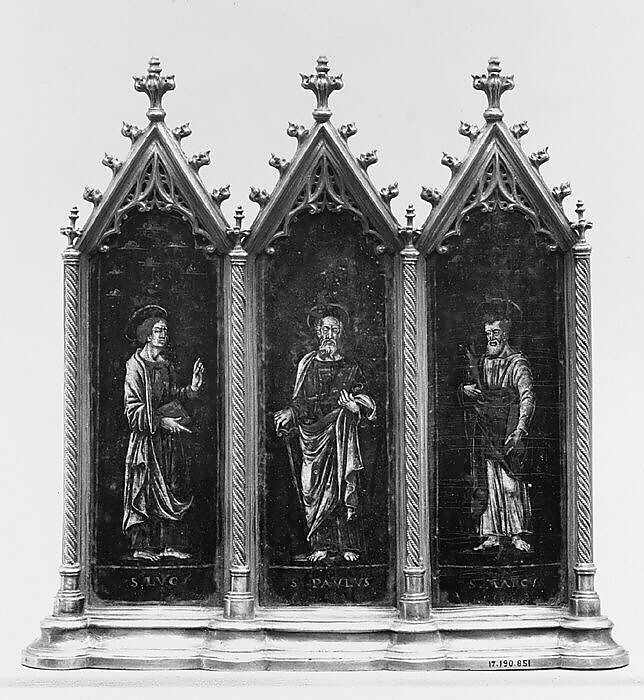 - Medium: Painted enamel on copper, partly gilt; silver gilt