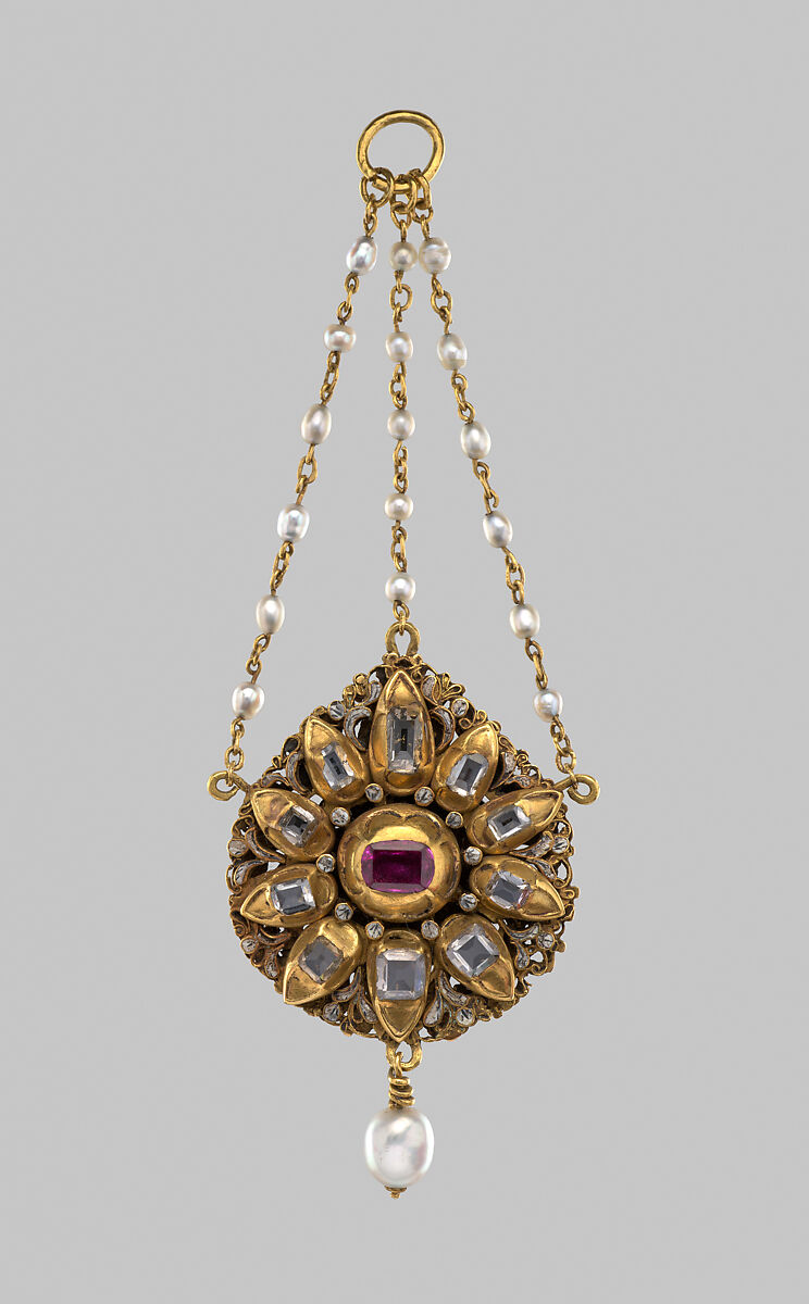 - Medium: Gold, enamel, ruby, diamonds, pearls