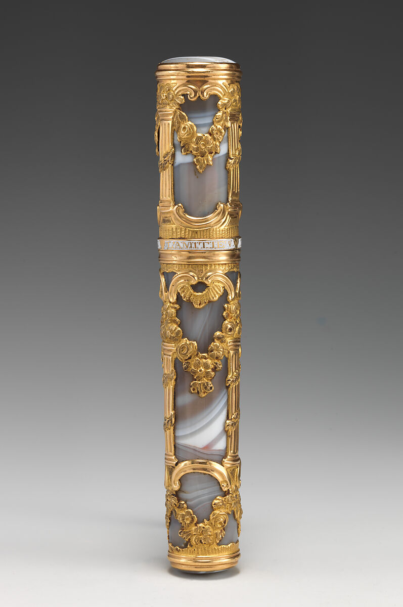 This étui, perhaps a container for needles, was evidently a gift, as the French inscription reads "Friendship finds a way."