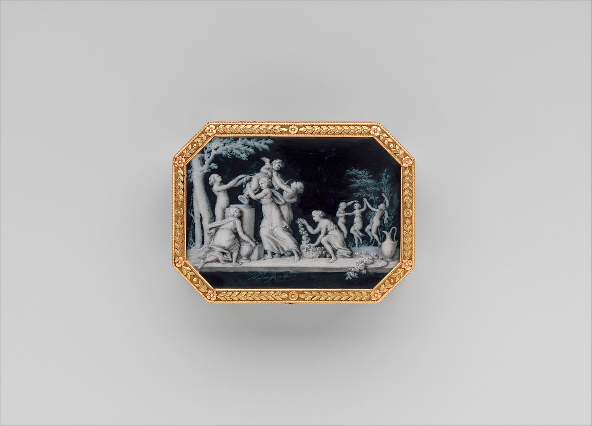 - Medium: Gold; grisaille on enamel