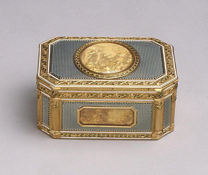 In eighteenth-century Europe, Paris led the production of high-quality luxury goods. Parisian goldsmiths made a wide range of small, personal articles such as snuffboxes; étuis to hold sealing wax, tweezers, or utensils for sewing; souvenirs, which contained thin ivory tablets for note taking; and shuttles for knotting lace. Gold snuffboxes and boxes decorated with portrait miniatures were prized and frequently given as royal gifts, often to ambassadors or members of the court in lieu of cash payments for their services. Coveted and admired, these boxes were produced from a variety of materials. The best were skillfully made of gold and embellished with diamonds, enameled decoration, lacquer, and other luxurious materials. By the middle of the century, the taking of snuff had become an entrenched social ritual, and the snuffbox, too, had become an important social prop. Snuffboxes were considered highly fashionable accessories, with some merchants advertising new boxes with each change of season. The popularity of snuffboxes extended to all levels of society, and for those who could not afford gold, boxes were produced in less expensive materials such as silver, tortoiseshell, porcelain, or domestically produced lacquer.