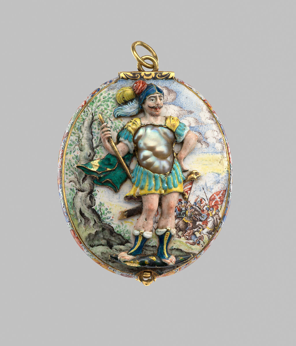 - Medium: Painted enamel on gold; pearl