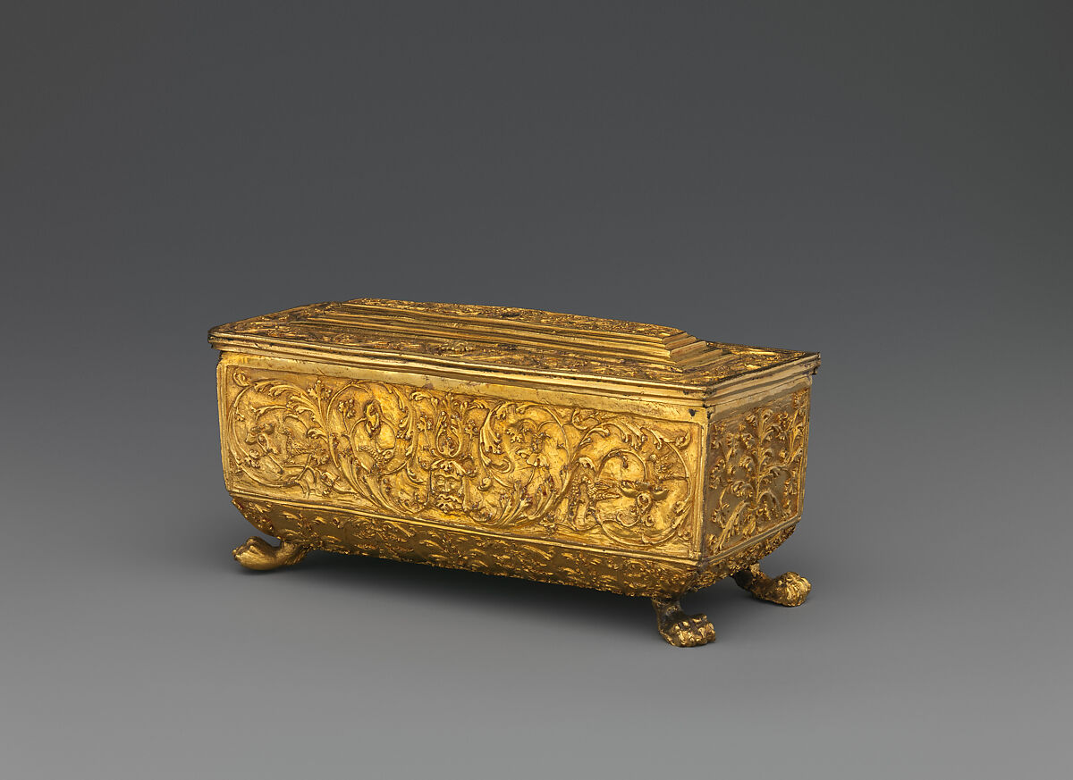 This sarcophagus-shaped casket may have been made to contain a relic.