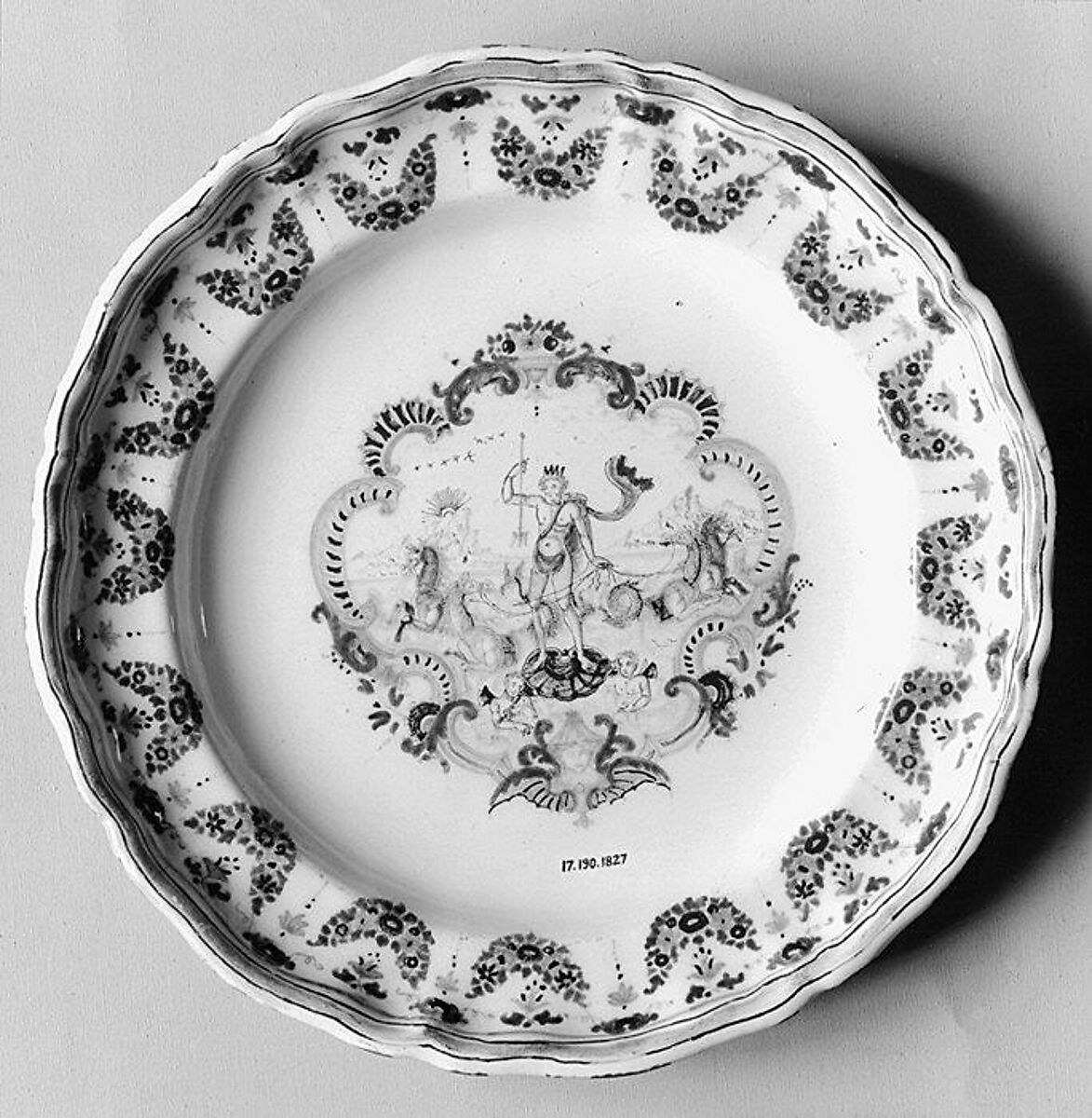 This plate or tray belonged to a service a service made for Madame de Pompadour, ordered in 1745. An accompanying écuelle with cover (17.190.1893a, b) is also in the Museum's collection.