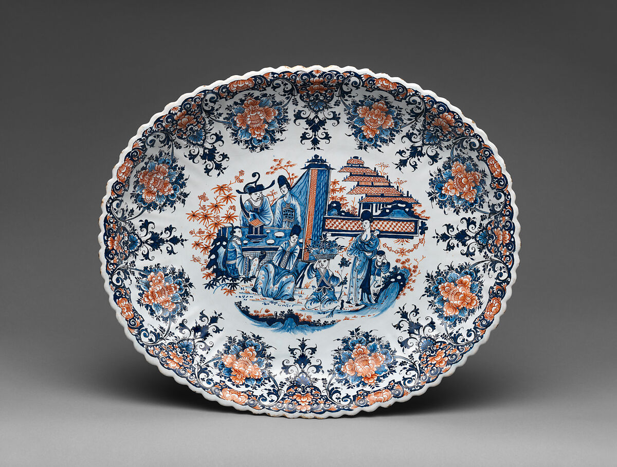 Faience, or tin-glazed and enameled earthenware, first emerged in France during the sixteenth century, reaching widespread usage among elite patrons during the seventeenth and early eighteenth centuries, prior to the establishment of soft-paste porcelain factories. Although characterized as more provincial in style than porcelain, French faience was used at the court of Louis XIV as part of elaborate meals and displays, with large-scale vessels incorporated into the Baroque garden designs of Versailles. Earlier examples of French faience attest to the strong influence of maiolica artists from Italy. Later works demonstrate the ways in which cities such as Nevers, Rouen, Lyon, Moustiers, and Marseille developed innovative vessel shapes and decorative motifs prized among collectors throughout Europe.