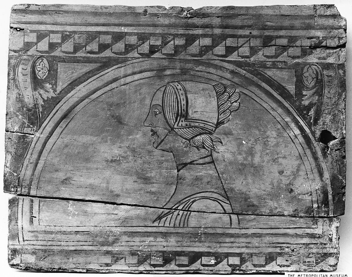 One of fourteen panels from a frieze (23.188.1–.14), each depicting a profile portrait bordered by a molding of dentils to simulate architecture.