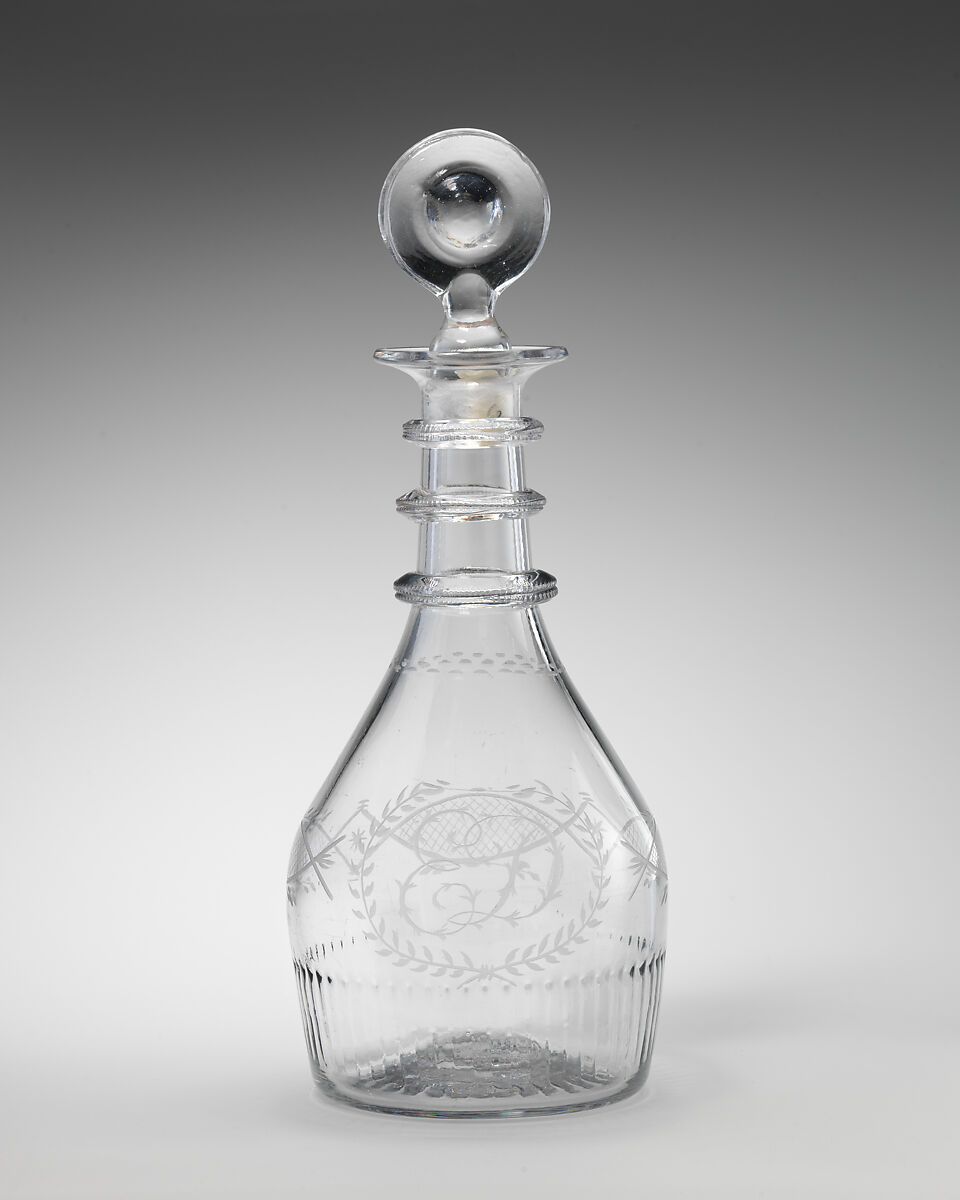 Glassmaking was one of the luxury industries that flourished in eighteenth-century Britain, advanced by local innovations like flint glass (designed to imitate Venetian glass). These decanters were made by the Cork Glass Company.