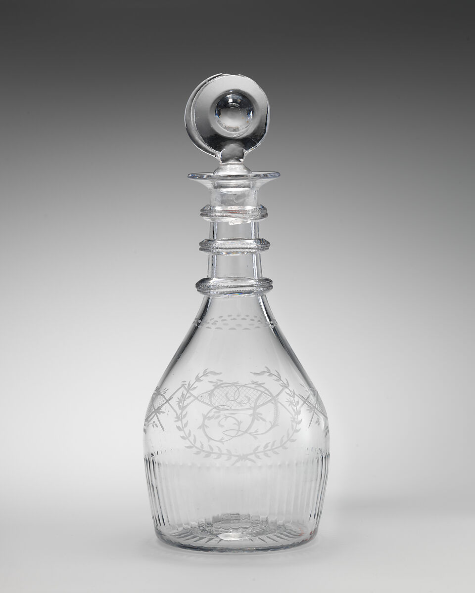 Glassmaking was one of the luxury industries that flourished in eighteenth-century Britain, advanced by local innovations like flint glass (designed to imitate Venetian glass). These decanters were made by the Cork Glass Company.