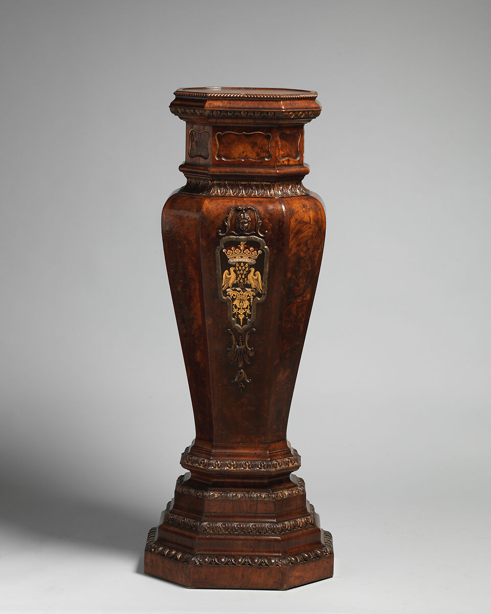 - Medium: Walnut and walnut veneer, parcel gilt; gilt lead; verre églomisé