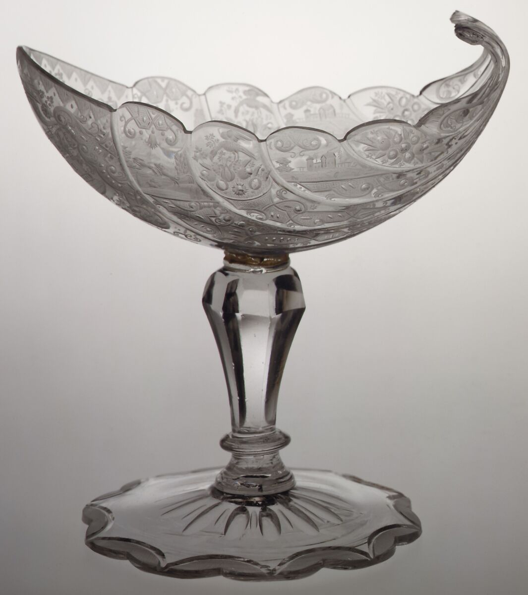 The engraving on this sweetmeat dish, called "Gondola" shape, is exceptionally fine.