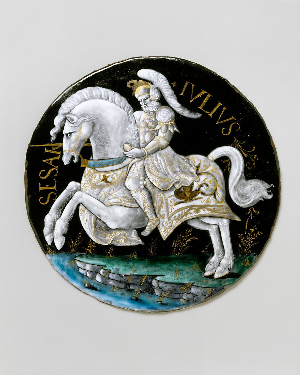 This portrait of Julius Caesar is part of a series depicting the Nine Worthies, historical figures thought to embody the values of chivalry—from antiquity: Hector, Alexander, and Julius Caesar; from the Old Testament: Joshua, David, and Judas Maccabeus; and from the Middle Ages: King Arthur, Charlemagne, and Godefroy de Bouillon. The Nine Worthies were first extolled as exemplars of the chivalric code by Jacques de Longuyon, in his romance Les Voeux du Paon (The Vows of the Peacock, ca. 1312), and thereafter became a popular subject in French literature and art.