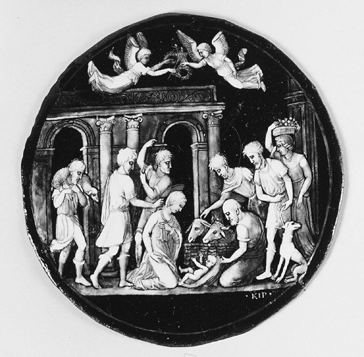 A number of midcentury Limoges enamel painters were exquisite copyists. Some drew directly on Italian precedents, as in this case: a bronze medal by Valerio Belli (ca. 1468–1546) provided the source for the scene.