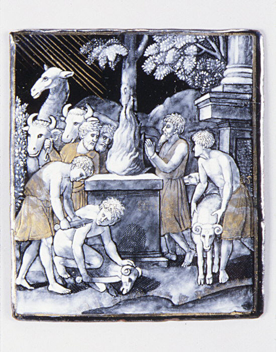 The scene, illustrating an episode in the Old Testament book of Genesis (8:20), was based on an Italian engraving by Marco Dente