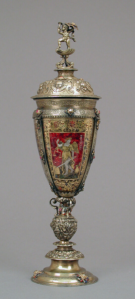 - Medium: Silver gilt, glass, enamel, diamonds, rubies