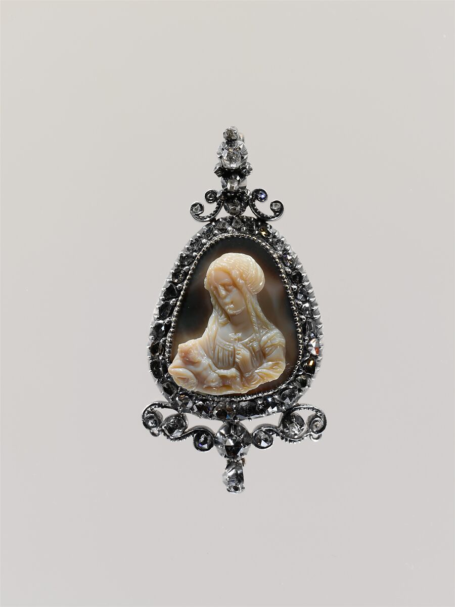 The composition, with tenderly interacting figures, is arranged in the manner of early Netherlandish paintings of Madonnas. The Italian Renaissance brought with it a wholehearted embrace of classical antiquity throughout the fifteenth and sixteenth centuries. Emulation of ancient cameos played a large part. Carvers invested ancient myths with increasingly refined compositions and techniques, paying close attention to the latest archaeological discoveries. Demand for Italian carvers took them to all the courts of Europe. Milan in particular developed a taste for cameos with wondrous atmospheric effects.