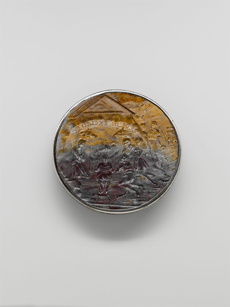 The jasper in this intaglio is not layered, but the engraver used its mottled patternings and variegated colorations, from violet to amber, to add atmospheric effects to his model, much like a cameo carver exploring a stone's best properties. The Renaissance composition is sufficiently large and lucid to be judged without the aid of an impression. The intaglio's original function is not known, but a devout subsequent owner decided to make it into a seal.