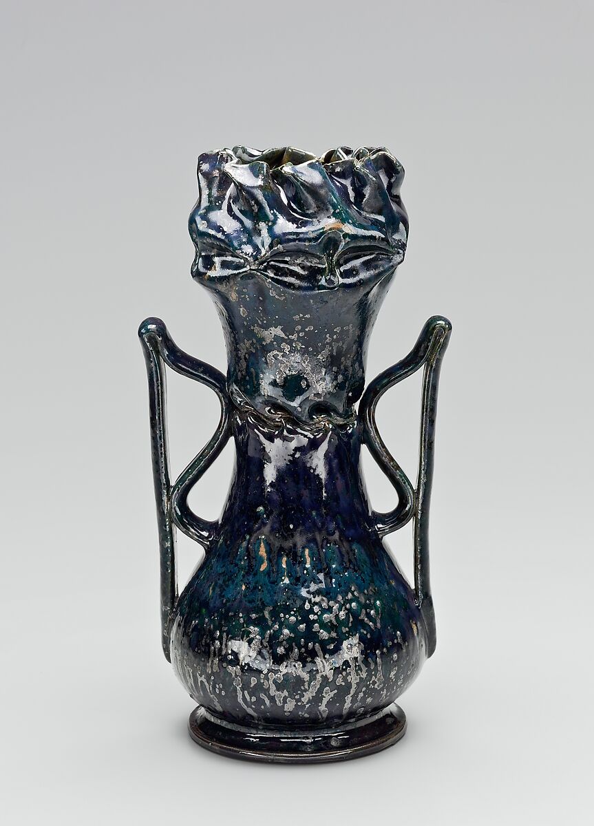This vase is from the Robert A. Ellison Jr. Collection of American art pottery donated to the Metropolitan Museum in 2017 and 2018. The works in the collection date from the mid-1870s through the 1950s. Together they comprise one of the most comprehensive and important assemblages of this material known. The unparalleled work of George E. Ohr is well represented in the collection. Ellison was an early admirer, collector, and scholar of Ohr’s work and has written extensively on the artist.
