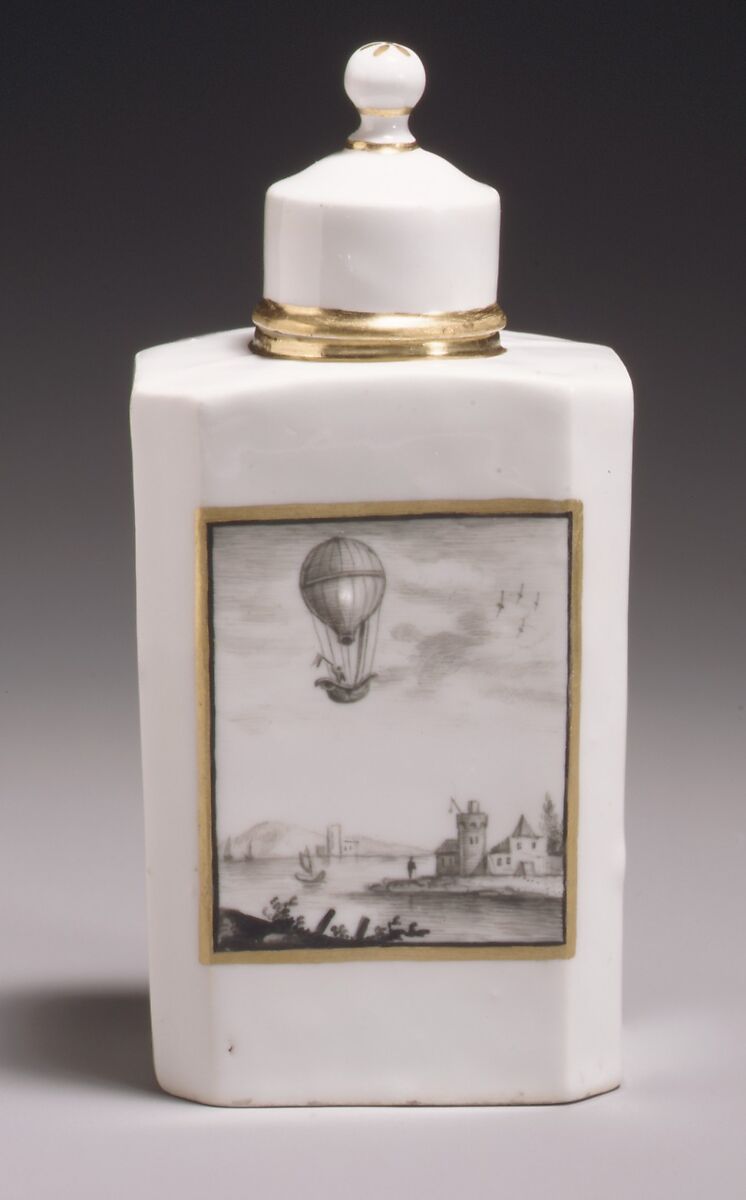 The scene commemorates the balloon ascension of Nicolas François Blanchard (1753–1809), who crossed from Dover to Calais in 1785.