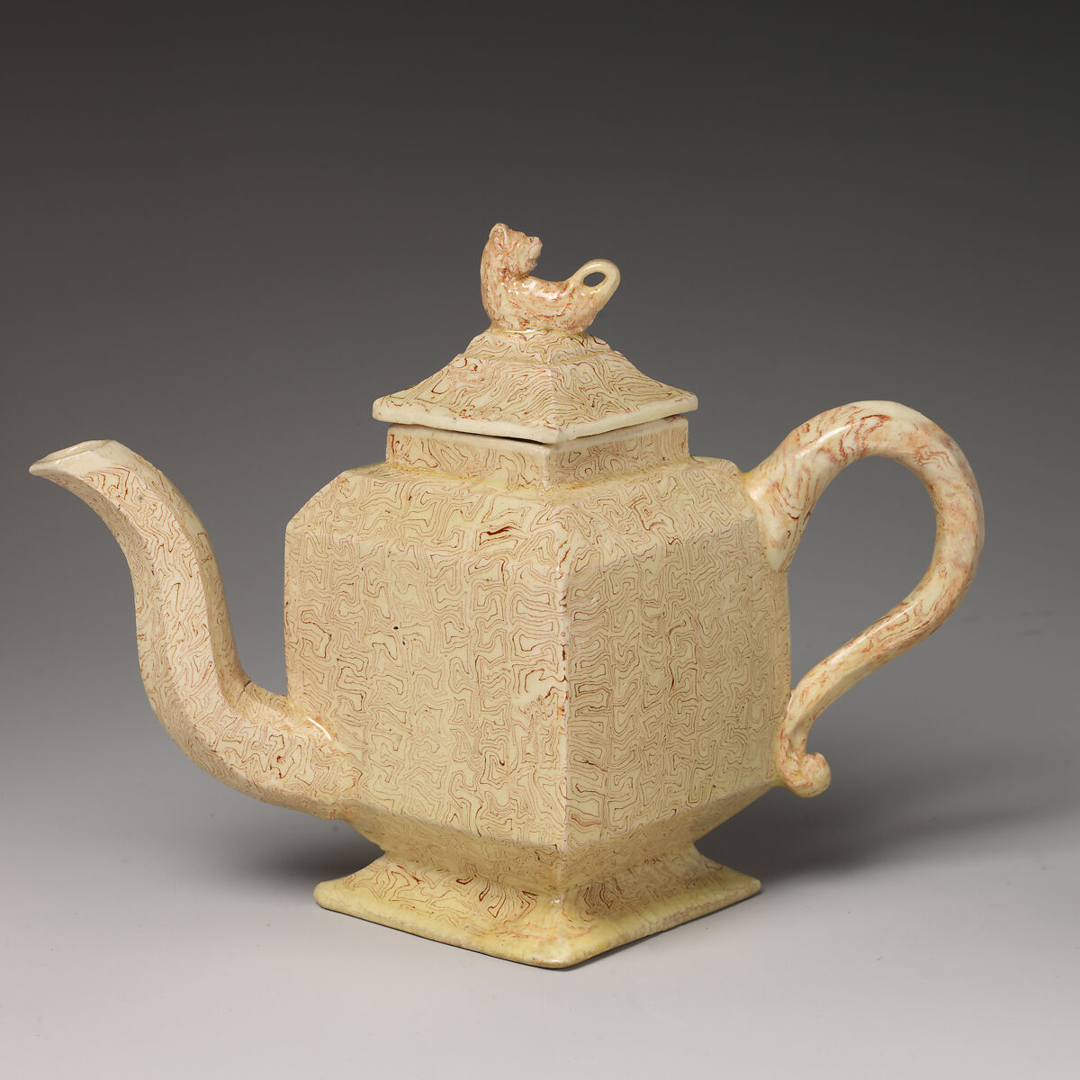 - Medium: Agateware (glazed earthenware)
