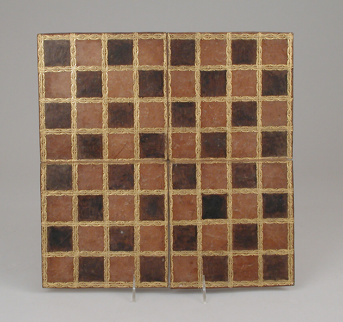 - Medium: Brown leather, gold tooled