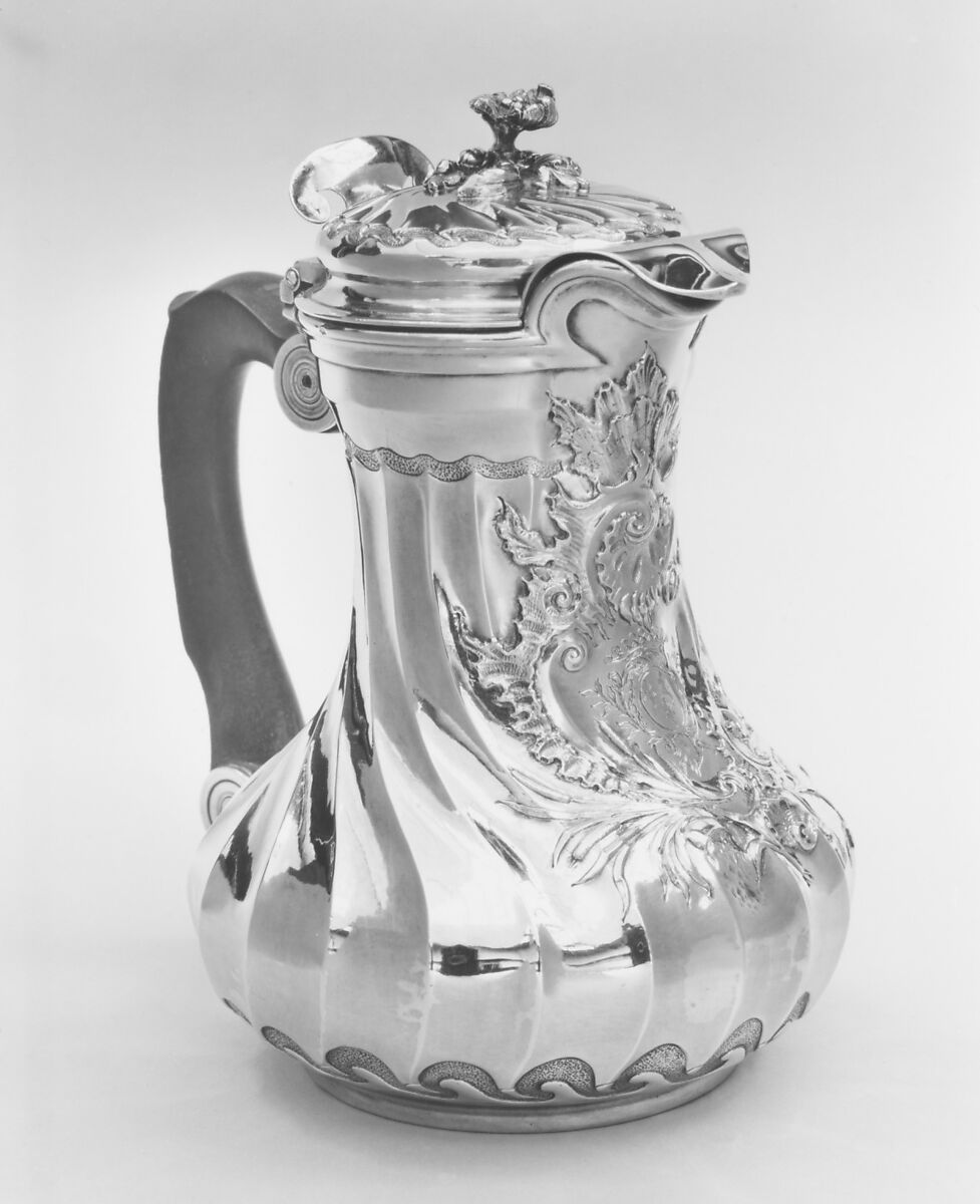 Daughter of one of the founders of the Weyerhaeuser Timber Company, Catherine D. Wentworth (1865–1948) was an art student and painter who lived in France for thirty years. She became one of the most important American collectors of eighteenth-century French silver and on her death in 1948 bequeathed part of her significant collection of silver, gold boxes, French furniture, and textiles to the Metropolitan Museum. The collection is particularly strong in domestic silver as illustrated by this coffeepot.