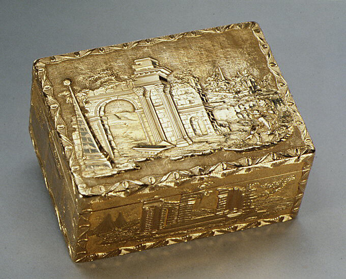 In eighteenth-century Europe, Paris led the production of high-quality luxury goods. Parisian goldsmiths made a wide range of small, personal articles such as snuffboxes; étuis to hold sealing wax, tweezers, or utensils for sewing; souvenirs, which contained thin ivory tablets for note taking; and shuttles for knotting lace. Gold snuffboxes and boxes decorated with portrait miniatures were prized and frequently given as royal gifts, often to ambassadors or members of the court in lieu of cash payments for their services. Coveted and admired, these boxes were produced from a variety of materials. The best were skillfully made of gold and embellished with diamonds, enameled decoration, lacquer, and other luxurious materials. By the middle of the century, the taking of snuff had become an entrenched social ritual, and the snuffbox, too, had become an important social prop. Snuffboxes were considered highly fashionable accessories, with some merchants advertising new boxes with each change of season. The popularity of snuffboxes extended to all levels of society, and for those who could not afford gold, boxes were produced in less expensive materials such as silver, tortoiseshell, porcelain, or domestically produced lacquer.