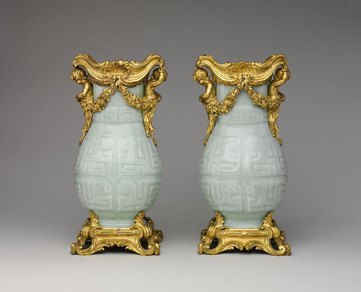 NARRATOR: There are a number of these mounted Chinese vases in this room. Take a moment to look around. Items like these were among the most highly sought-after luxury objects in the eighteenth century. Promoting as well as profiting from this trend were Parisian luxury dealers, or marchand-merciers. They imported Asian porcelains, had them mounted in Paris, then sold them for exorbitant fees. In addition, to entice new clientele, they became taste-setters, inventing new types of gilt-bronze mounts for the porcelain.