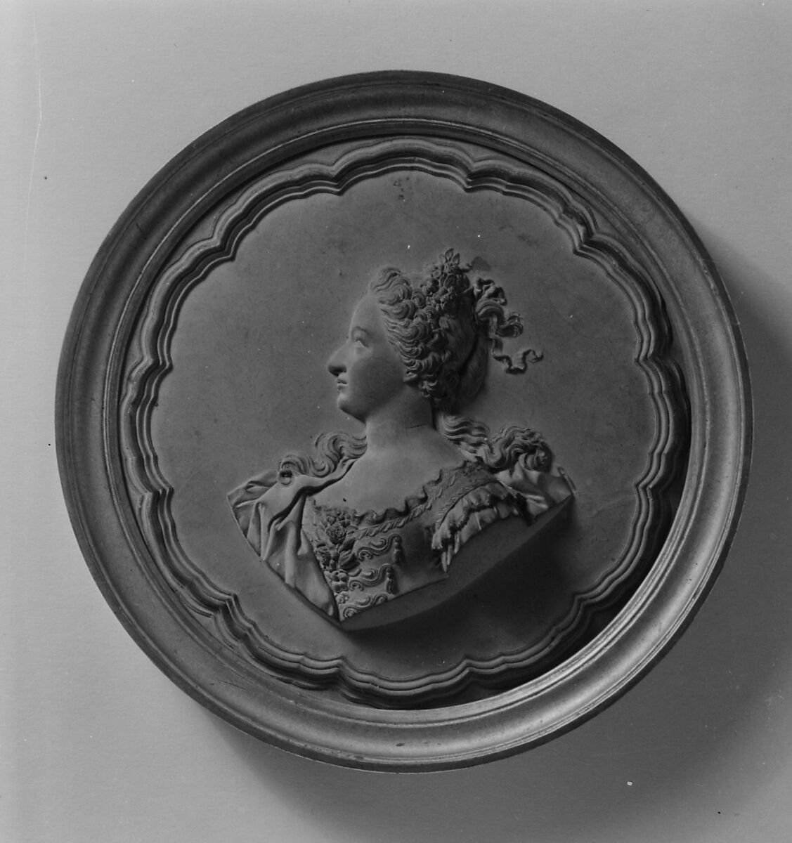 - Medium: Medallion: cast terracotta (terre de Chaumont); frame: gilt wood