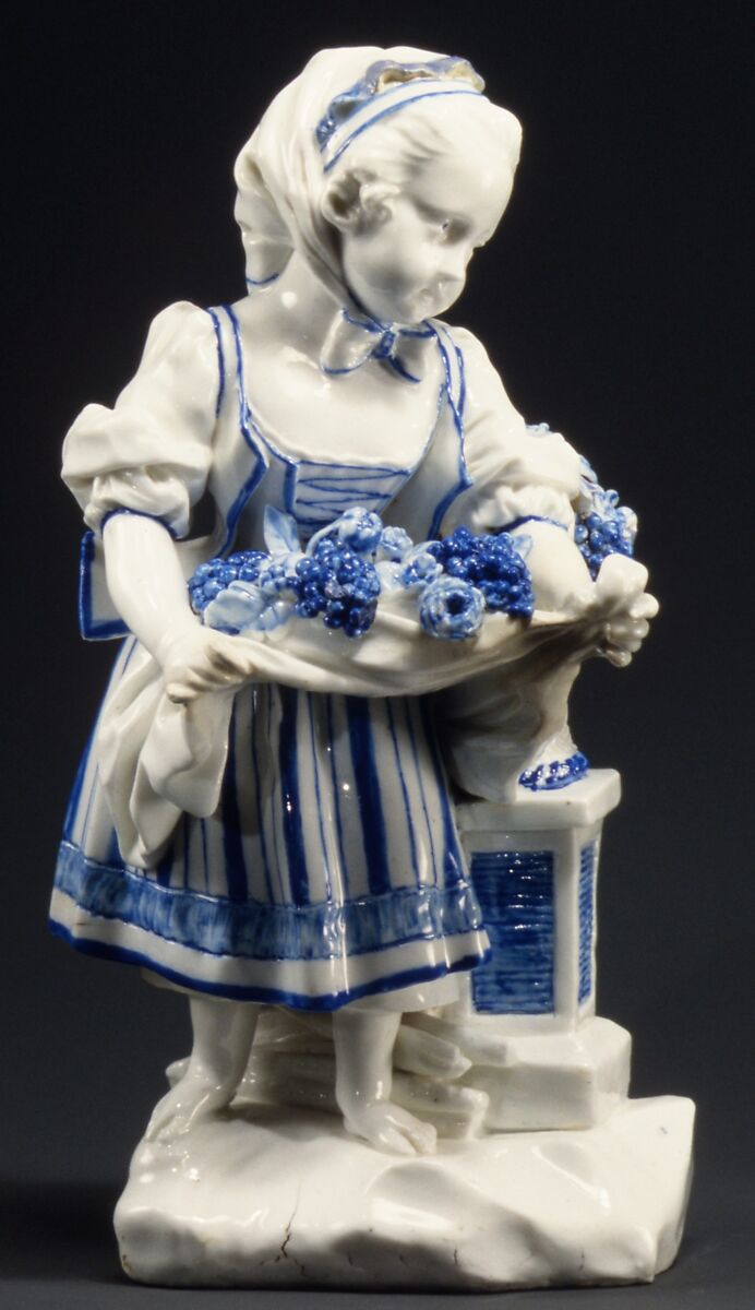 Works of art by the French artist François Boucher (1703–1770), who held the prestigious title of first painter to the king, served as a highly popular source of inspiration for artists working in a variety of media in the middle decades of the eighteenth century. Prints made after paintings by Boucher were widely circulated and provided artists with compositions that could be faithfully reproduced in smaller scale or adapted to three-dimensional porcelain sculpture. Works by Boucher served as the source not only for the painted scenes on vases and snuffboxes, but also for the porcelain figures which were listed as "Enfants Boucher" (Boucher Children) in the factory’s sales ledgers.