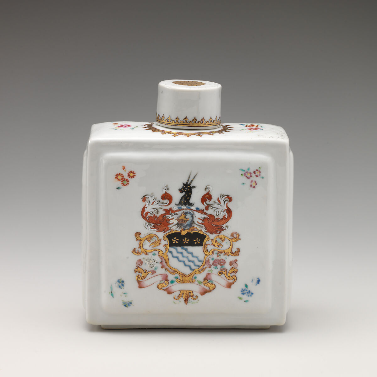 Tea caddy with cover with armorial decoration (part of a service)