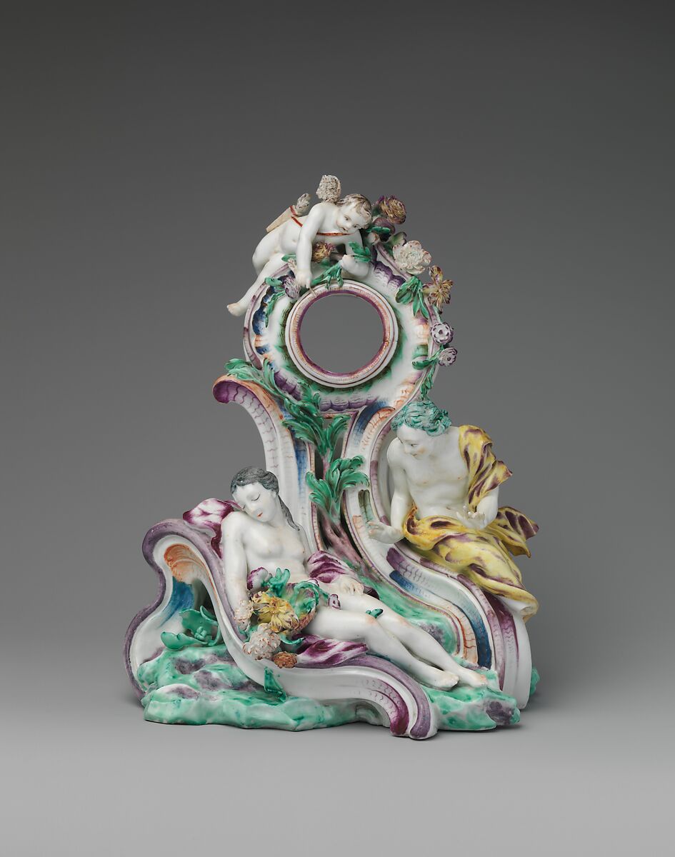 When not being worn on an individual, a pocket watch could be placed on a stand, transforming it from a personal item into a household one, like a mantel clock. Watch stands were produced at porcelain and pottery factories throughout Europe and were also made in other materials, such as gilded bronze and wood. First appearing in the seventeenth century, they gained popularity in the eighteenth and nineteenth centuries when watch ownership became more common.