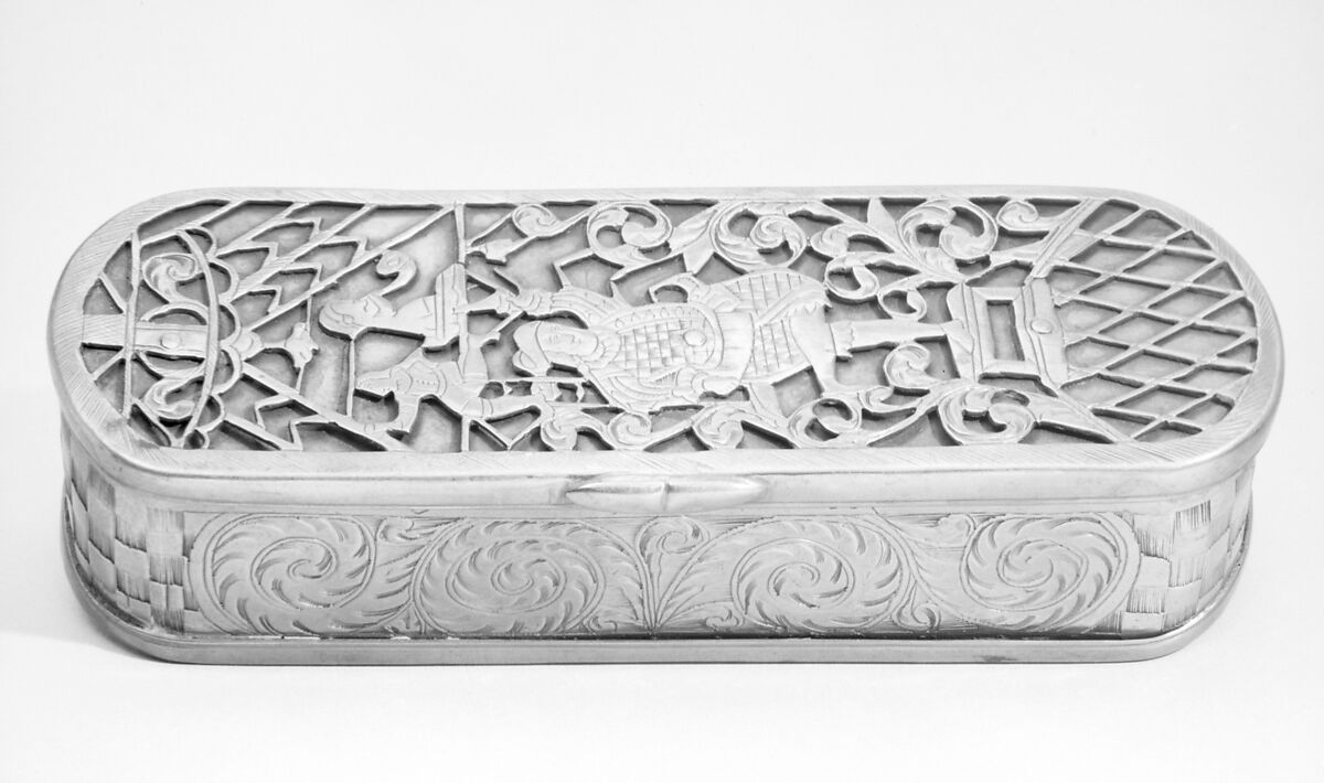 Two openwork tobacco boxes were sold at Christie’s in Amsterdam: on May 24, 1985, lot 368, and on September 12-13, 1985, lot 352.