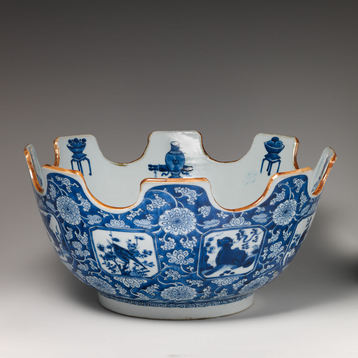 This vessel, which was intended for chilling wine glasses, does not bear a British coat of arms, but its form derives from an English silver example, suggesting it was intended for an English client.