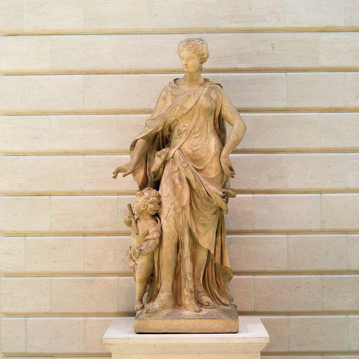 Lining the rusticated, arched facade of the Henry Kravis wing of the Museum are four larger-than-lifesize Allegories of the Elements, made of limestone (64.93.1–.4). Originally standing in the gardens of the Château de Mussegros near Ecouis in Normandy, the figures can be attributed on stylistic grounds to the sculptor Jean-Pierre Defrance (1694–1768) and are dated around 1750.