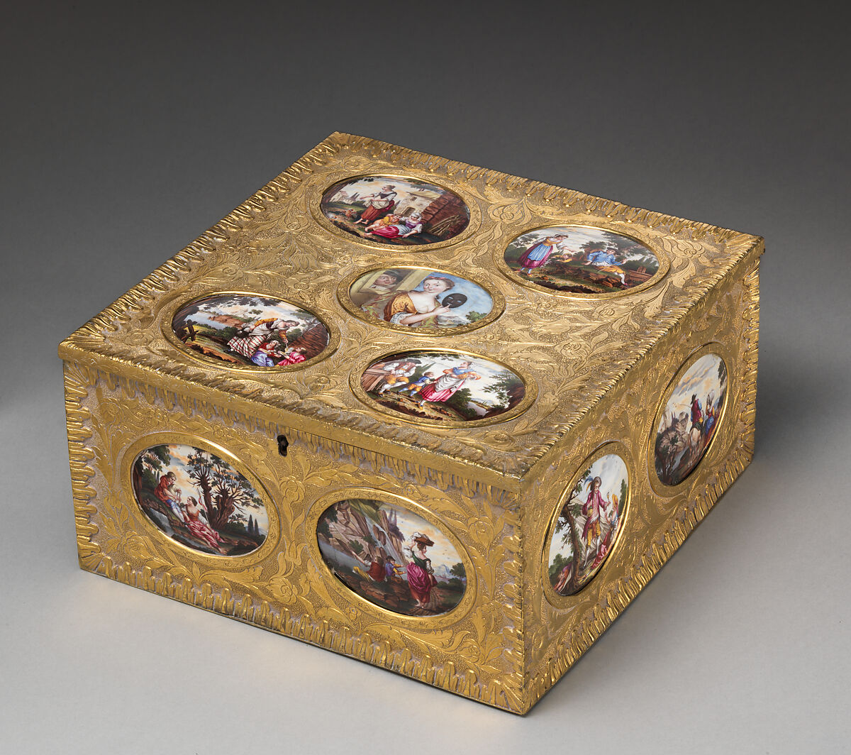 - Medium: Painted enamel on copper; gilt pinchbeck metal