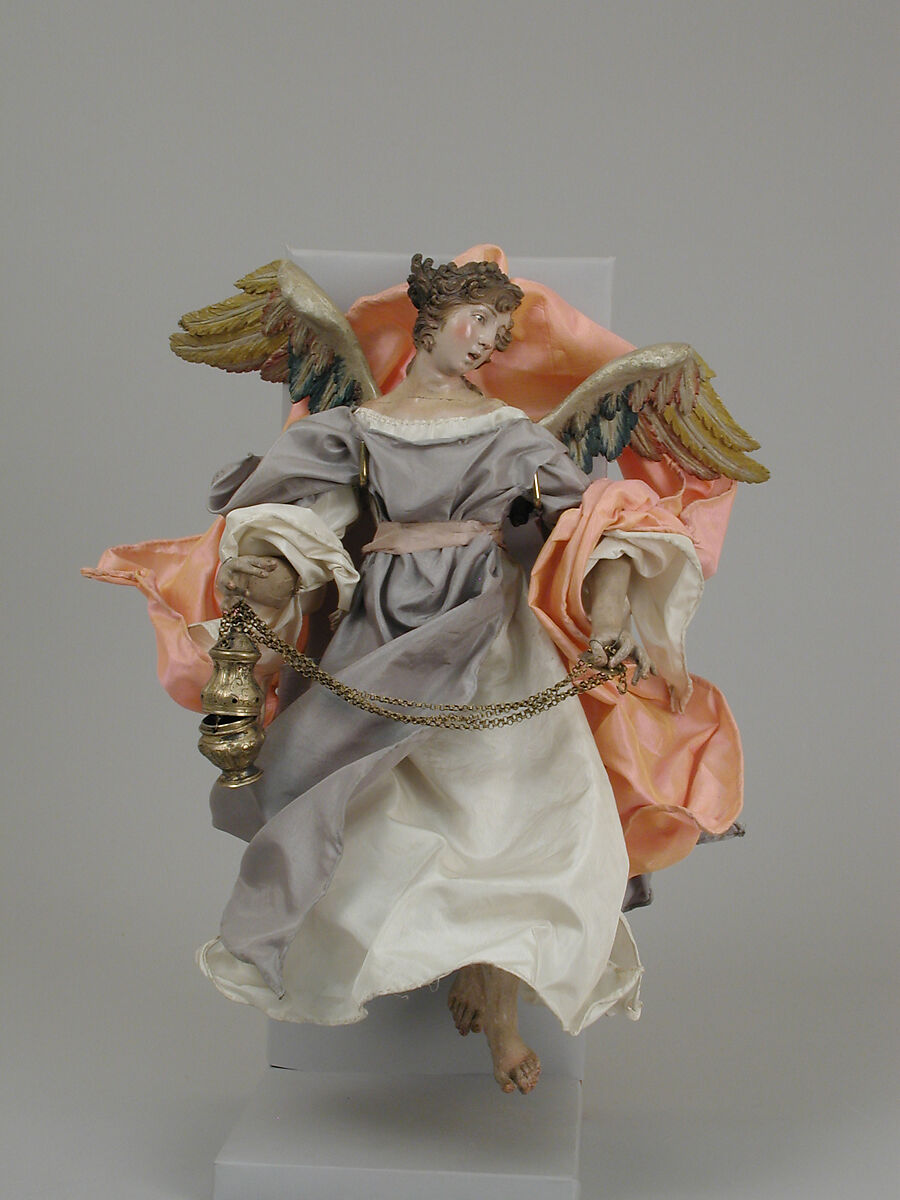 - Medium: Polychromed terracotta head; wooden limbs and wings; body of wire wrapped in tow; various fabrics