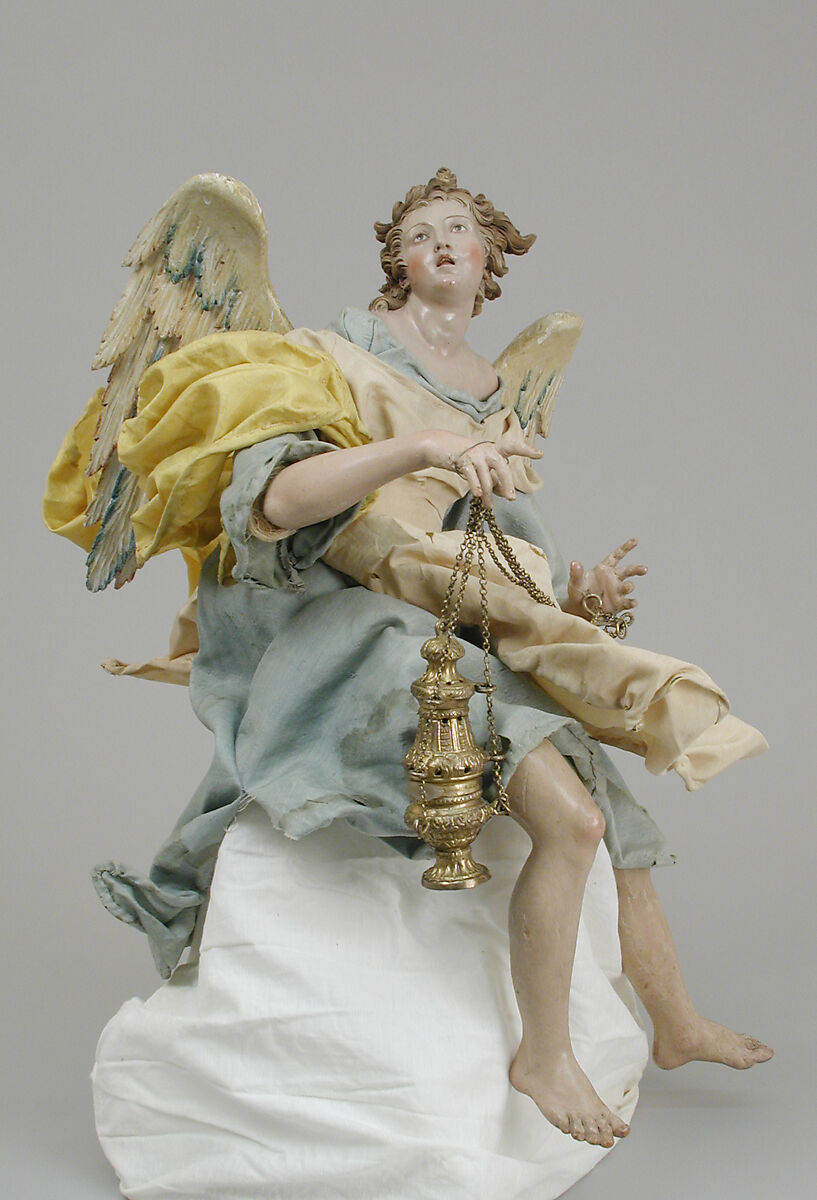 According to a tradition that seems to be supported by stylistic comparisons with figures in the collections of Naples and in the vast holdings of the Bavarian National Museum in Munich, some of the winsome heads of the Howard angels are to be credited to the best eighteenth-century masters: Giuseppe Sammartino (1720–1793), well known for his monumental sculptures in marble and in stucco, his pupils Salvatore di Franco, Giuseppe Gori, and Angelo Viva, and one Lorenza Mosca (d. 1789), who was employed at the Royal Porcelain Factory at Capodimonte and stage director of the Royal Christmas Crib.