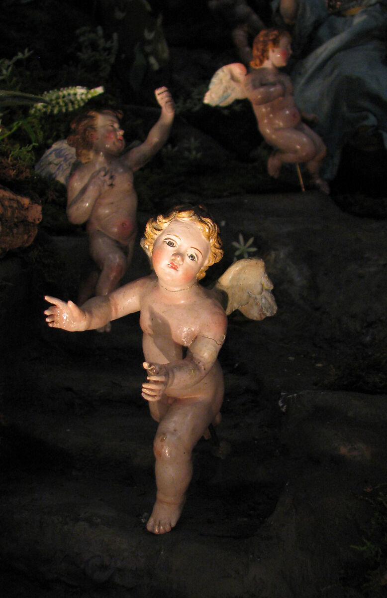 According to a tradition that seems to be supported by stylistic comparisons with figures in the collections of Naples and in the vast holdings of the Bavarian National Museum in Munich, some of the winsome heads of the Howard angels are to be credited to the best eighteenth-century masters: Giuseppe Sammartino (1720–1793), well known for his monumental sculptures in marble and in stucco, his pupils Salvatore di Franco, Giuseppe Gori, and Angelo Viva, and one Lorenza Mosca (d. 1789), who was employed at the Royal Porcelain Factory at Capodimonte and stage director of the Royal Christmas Crib.