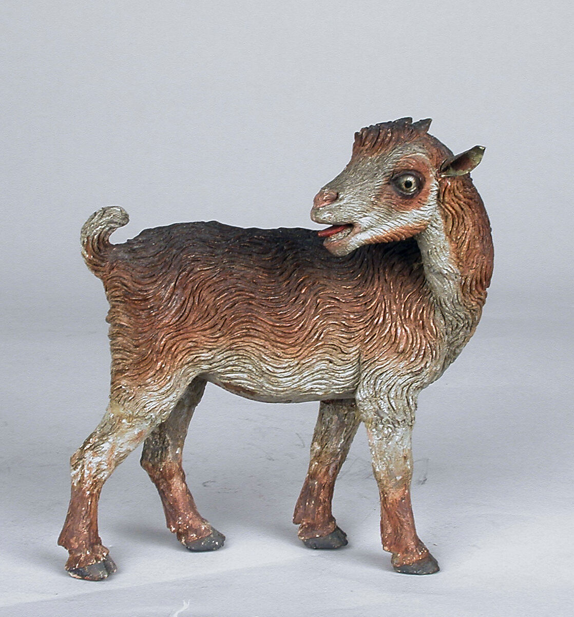 - Medium: Polychromed terracotta body, wooden legs, metal ears
