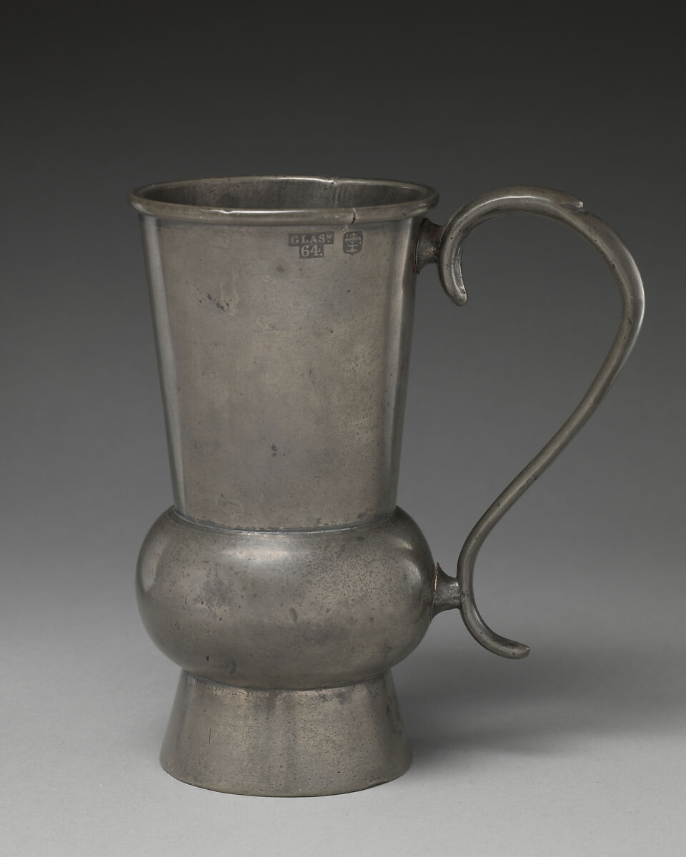 The original of this very contemporary-looking cup is a Scottish pewter half-pint measure, made in Glasgow in 1864. Sets of measures of this "thistyle" shape were made in Glasgow from about 1800 in four sizes — but the type, derived from 18th century silver models, were rare in pewter.