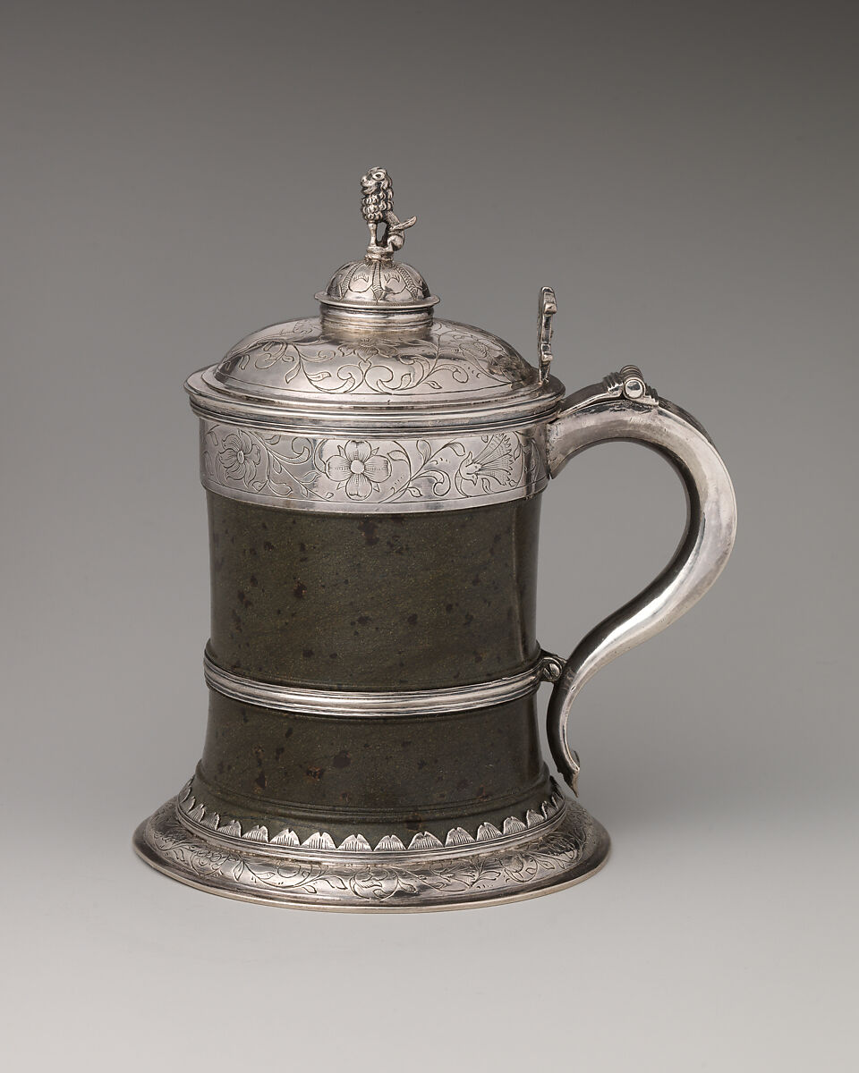 This is among the earliest English examples of serpentine mounted in silver. The only other sixteenth-century example we are aware of is the also unmarked tankard at Clare College, Cambridge.