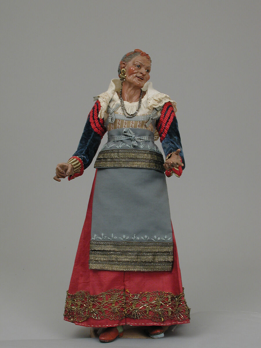 - Medium: Polychromed wood and terracotta; silk, linen, straw, steel
