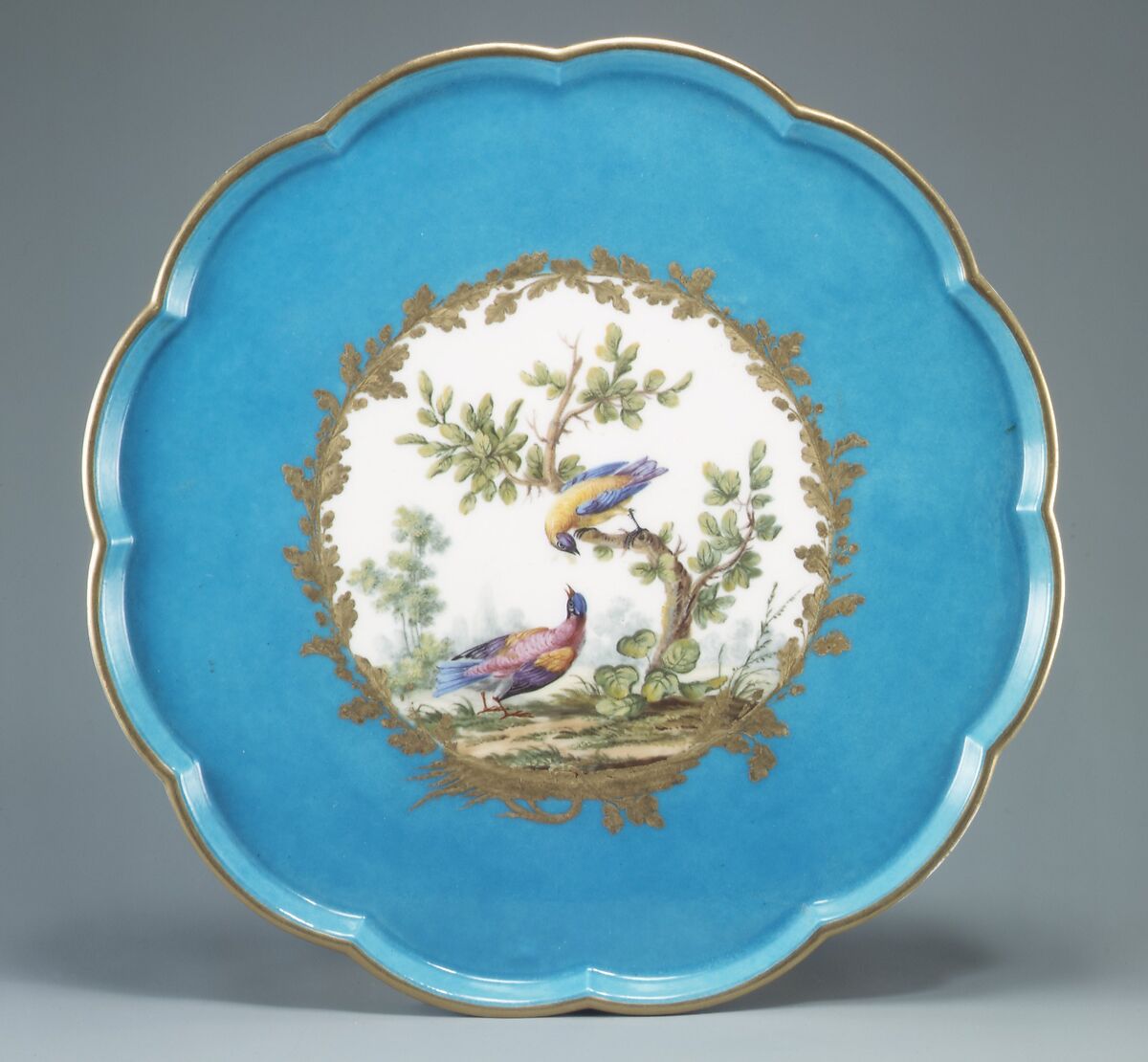 One of the most celebrated services produced at Sèvres was delivered to Louis-René-Édouard, prince de Rohan-Guémenée (1734–1803), on September 7, 1772. All of the pieces were decorated with the rich turquoise ground color known as bleu céleste and with birds encircled by an elaborate gilt wreath of oak leaves and acorns. Many of the components of the service bear the initials LPR ( for Louis, prince de Rohan), executed in two tones of gilding. The service cost the substantial sum of 20,772 livres, which was roughly equivalent to twice the annual income of a successful doctor at the time.