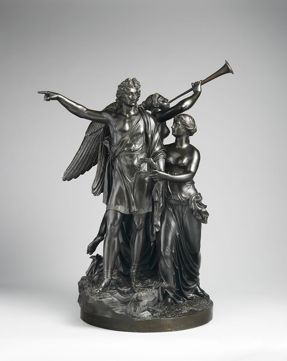 This composition, first cast with Napoleon's head, was originally designed to celebrate the French victory at Austerlitz. After the emperor's downfall and the restoration of the Bourbon monarchy in 1814, the bronze sculptor Thomire reconfigured the group with the head of the maréchal de Villars in order to represent the great ancien régime strategist's victory over the Austrians at the 1712 battle of Denain (War of the Spanish Succession).