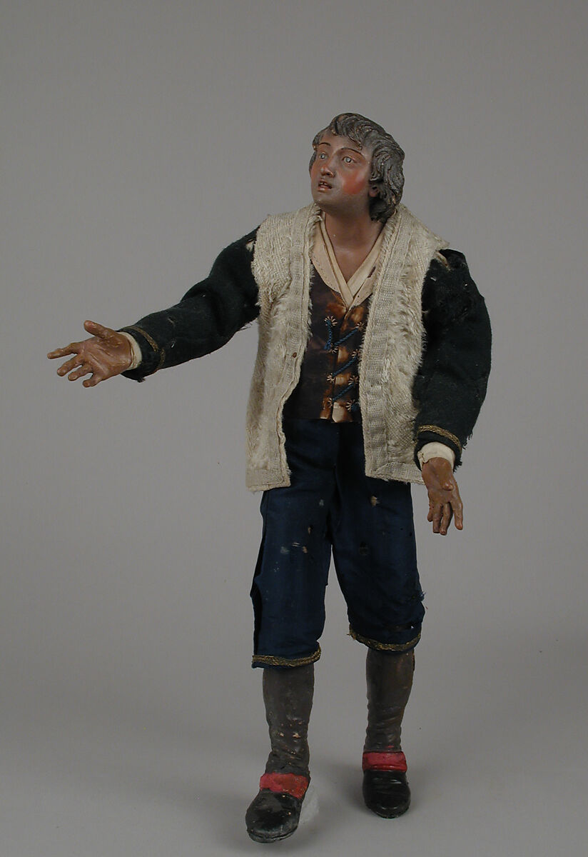 - Medium: Polychromed terracotta head; wooden limbs; body of wire wrapped in tow; silk, wool and fur-like garments; leather pouch